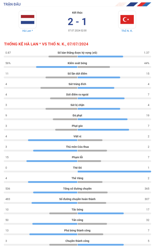 Bongda247 cập nhật tin tức bóng đá mới nhất trong ngày: Tổng cộng hơn 20 pha dứt điểm sau 90 phút bóng lăn và 3 bàn thắng được ghi, Hà Lan giành chiến thắng 2-1 đầy kịch tính để giành vé vào bán kết, rạng sáng 7/7.
