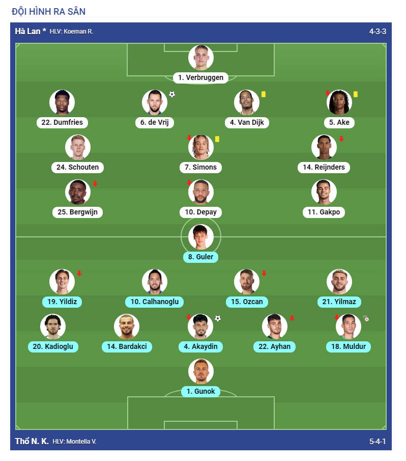 - Hà Lan: Stefan de Vrij 70′, Cody Gakpo 76′