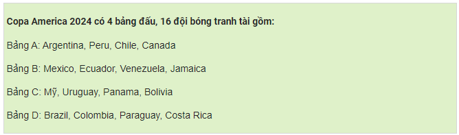 Bongda247 cập nhật tin tức bóng đá mới nhất trong ngày: Copa America 2024 là lần thứ 48 giải vô địch bóng đá Nam Mỹ được tổ chức, sự kiện lần này diễn ra tại Mỹ từ ngày 21/6/2024 đến 15/7/2024. Lịch thi đấu bóng đá Copa America luôn được cập nhật mới, mang đến cho người hâm mộ những thông tin quan trọng nhất.