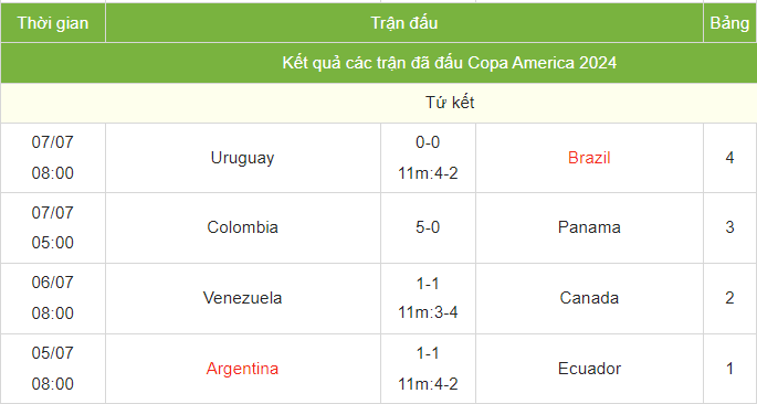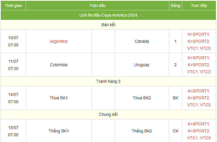Lịch thi đấu bóng đá bán kết Copa America 2024 mới nhất: Argentina – Canada, Colombia – Uruguay