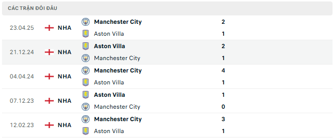 - Aston Villa đang có phong độ khá ổn định tại Ngoại Hạng Anh khi giành 5 chiến thắng trong 6 trận gần nhất trên mọi đấu trường. Dưới sự dẫn dắt của HLV Unai Emery, đội bóng thành Birmingham thể hiện lối chơi kỷ luật, pressing hợp lý và tận dụng rất tốt lợi thế sân nhà Villa Park. Thống kê cho thấy, Aston Villa đã bất bại 8 trận liên tiếp tại Villa Park, trong đó có 7 chiến thắng. Tuy nhiên, khi đối đầu với các ông lớn như Man City, đội bóng này thường gặp khó do khả năng kiểm soát bóng và đẳng cấp cá nhân của đối phương vượt trội. Lịch sử đối đầu cũng không ủng hộ Villa, khi họ chỉ thắng 1/10 lần chạm trán gần nhất với nửa xanh thành Manchester.