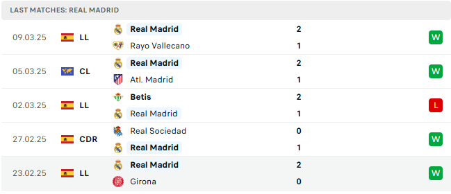Phong độ Real Madrid 5 trận gần đây