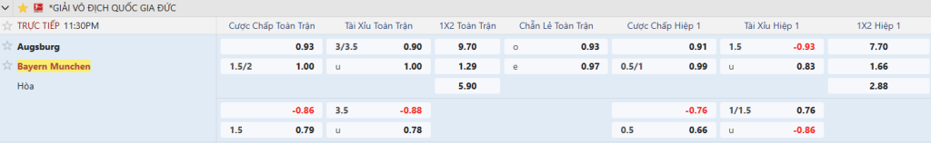 Soi kèo bóng đá Augsburg vs Bayern Munich