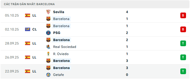 Phong độ Barcelona 5 trận gần đây