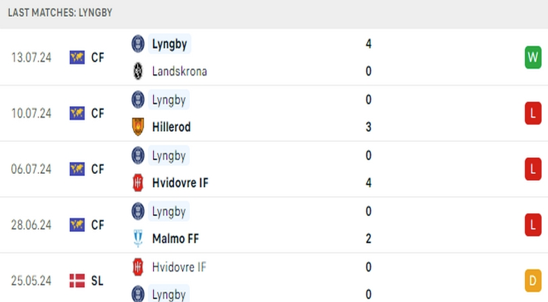 Phong độ Lyngby 5 trận gần đây
