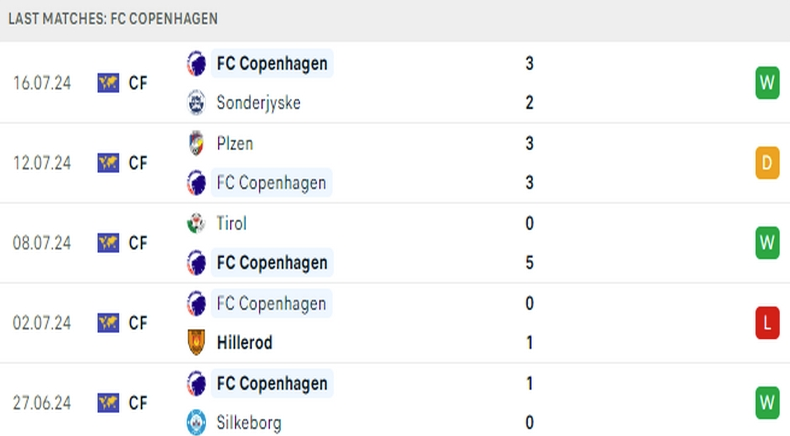 Phong độ Copenhagen 5 trận gần đây