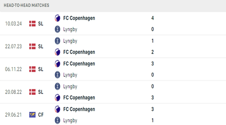 Trong 4 trận giao hữu trước mùa giải mới, Lyngby thua 3 trận trắng với các tỷ số 0-2, 0-4 và 0-3. Gần đây nhất, họ thắng Landskrona 4-0 nhưng đối thủ này bị đánh giá yếu hơn rất nhiều. Càng có lý do để tin vào một chiến thắng cho Copenhagen trong trận đấu sắp tới. Trong 5 lần chạm trán gần nhất, Copenhagen đều dễ dàng đánh bại Lyngby với 15 bàn thắng và chỉ để thủng lưới duy nhất 1 bàn.