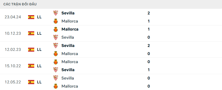 Lịch sử đối đầu Mallorca vs Sevilla
