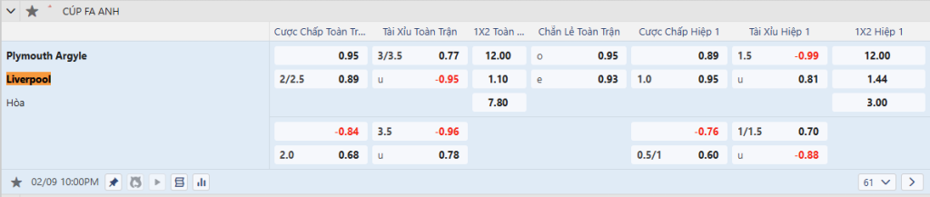 Kèo châu Á: Liverpool quá mạnh so với Plymouth, trong khi đội chủ nhà lại có hàng phòng ngự yếu kém. Dù The Kop có thể tung đội hình dự bị, nhưng vẫn đủ sức áp đảo đối thủ. Với mức chấp 1.5, Liverpool hoàn toàn có thể thắng cách biệt.