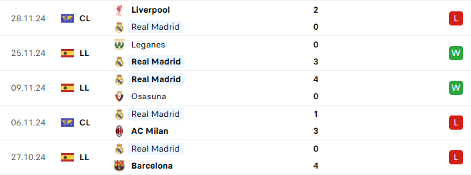 Real Madrid đã thua 3 trong 5 trận gần nhất trên mọi đấu trường, chịu thất bại nặng nề ngay trên sân nhà trước Barcelona và AC Milan vào cuối tháng 10 và đầu tháng 11, trước khi để thua Liverpool 0-2 tại Champions League vào giữa tuần, và đó là một trận thua xứng đáng cho đội bóng của Carlo Ancelotti.