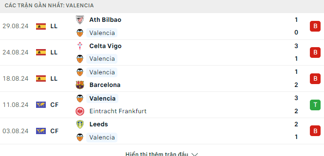 Mở màn mùa giải 2024/25, Valencia tiếp tục gặp khó khăn. Đội bóng đã trải qua 3 thất bại liên tiếp, dù đã có những lúc họ dẫn trước đối thủ. Ngay trong trận đấu đầu tiên, Valencia đã bị Barcelona lội ngược dòng, sau khi dẫn trước Celta Vigo, họ lại để đối thủ ghi liền 3 bàn và phải chấp nhận thất bại 1-3. Gần đây nhất, “Bầy dơi” tiếp tục phải nhận thất bại 0-1 trước Athletic Bilbao.