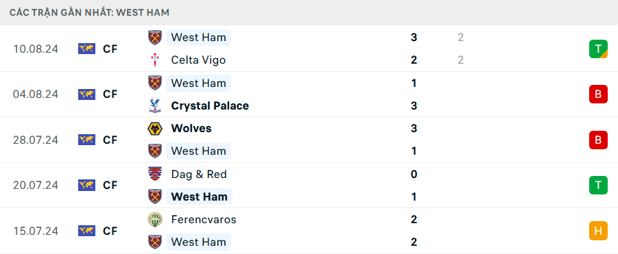 Phong độ West Ham gần đây