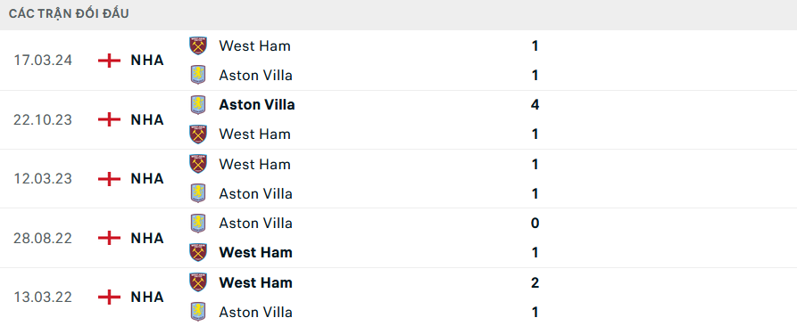 DỰ ĐOÁN TỶ SỐ WEST HAM VS ASTON VILLA: 1-1