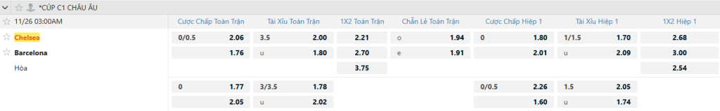Bongda247 – Nhận định Chelsea vs Barca 03h00 ngày 26/11 – UEFA Champions League: Ý kiến chuyên gia, dự đoán kết quả, phân tích chuyên môn, thông tin tỷ lệ bóng đá, thống kê bên lề, soi kèo trận đấu.