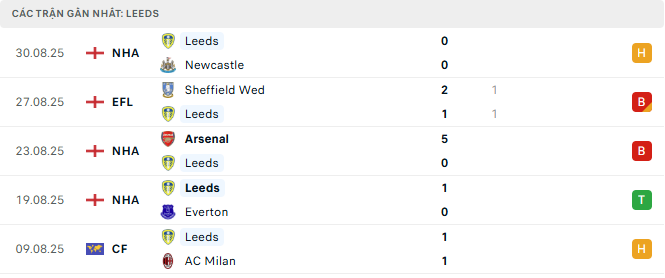 Ở chiều ngược lại, Leeds cũng không có thành tích sân khách khả quan. Đoàn quân của Daniel Farke đã để thua cả 8 trận làm khách gần nhất tại London, thủng lưới tới 26 bàn. Lần cuối cùng họ ca khúc khải hoàn tại thủ đô đã cách đây hơn hai năm, khi đánh bại Brentford ở vòng cuối mùa 2021/22. Lịch sử còn gợi lại ký ức buồn cho Leeds, khi từ năm 1925 đến 1930 họ từng trải qua chuỗi 12 trận toàn thua tại London. Với phong độ hiện tại, nguy cơ kịch bản đó tái diễn là hoàn toàn có thật.