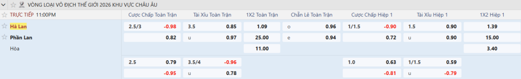 Chênh lệch đẳng cấp giữa hai đội là quá rõ. Hà Lan vượt trội về chất lượng nhân sự, phong độ lẫn lợi thế sân nhà. Trong khi đó, Phần Lan vẫn đang gặp khó ở khâu phòng ngự và dễ vỡ trận khi chịu áp lực cao. Lịch sử đối đầu cũng nghiêng hoàn toàn về phía “Cơn lốc màu da cam” với chuỗi 5 chiến thắng liên tiếp, trong đó có nhiều trận thắng cách biệt 3 bàn trở lên. Với hàng công đang đạt hiệu suất cao, Hà Lan hoàn toàn có thể tạo ra chiến thắng đậm, đặc biệt trong bối cảnh họ cần tích lũy hiệu số để củng cố ngôi đầu bảng.