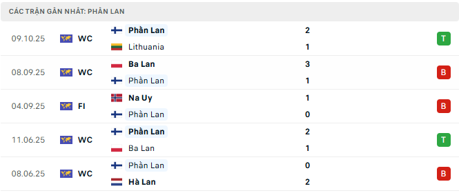 Phong độ Phần Lan 5 trận gần đây