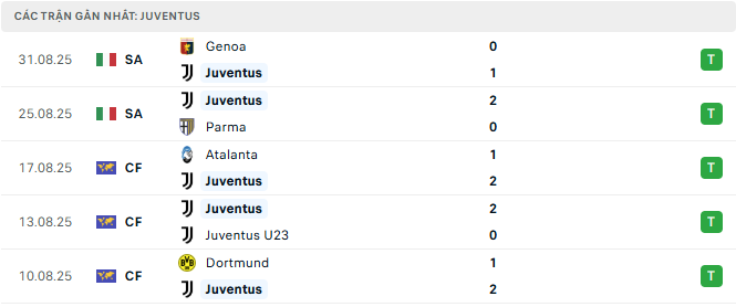 Phong độ Juventus 5 trận gần đây