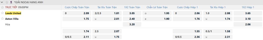 Soi kèo bóng đá Leeds vs Aston Villa