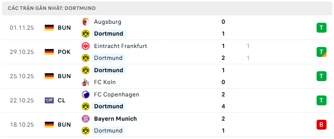 Phong độ Dortmund 5 trận gần đây