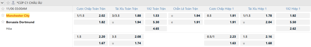 Soi kèo bóng đá Man City vs Dortmund