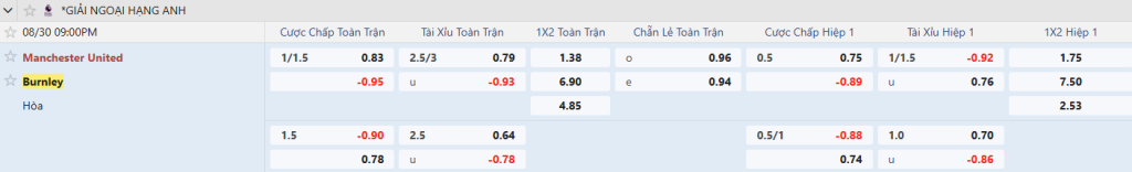 Soi kèo bóng đá Man Utd vs Burnley