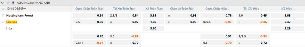 Với ưu thế về lực lượng, phong độ và tinh thần thi đấu, Chelsea đủ sức vượt qua Nottingham Forest đang sa sút. Ở mức kèo châu Á Chelsea -0.5, cửa trên là lựa chọn sáng giá.