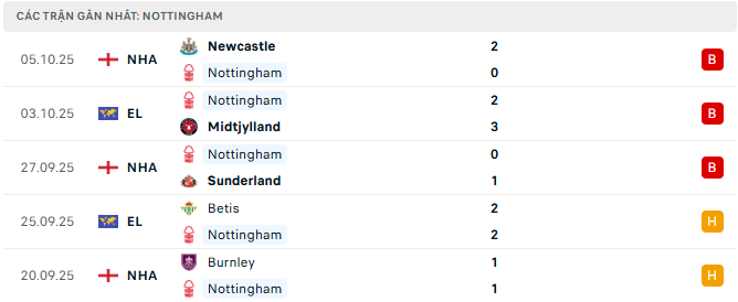 Phong độ Nottingham Forest 5 trận gần đây