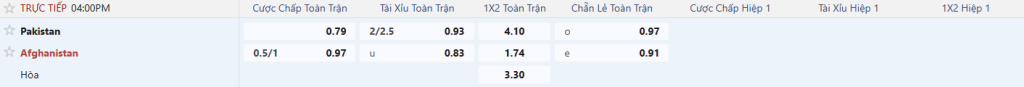 Soi kèo bóng đá Pakistan vs Afghanistan
