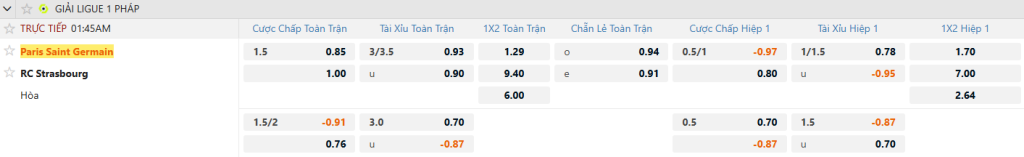 Xét về lực lượng, phong độ và mục tiêu giành chiến thắng để bám đuổi ngôi đầu bảng, PSG hoàn toàn vượt trội so với Strasbourg. Với kèo PSG -1.5, lựa chọn đội chủ nhà là phương án an toàn hơn, khả năng giành chiến thắng cách biệt lớn là rất cao.