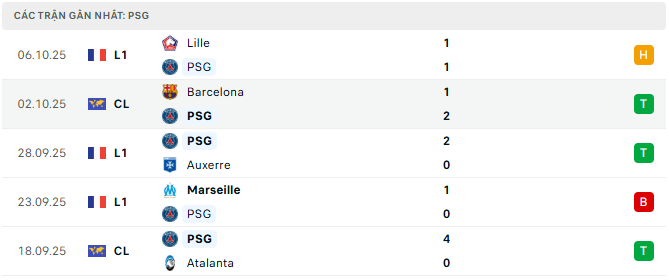 Phong độ PSG 5 trận gần đây