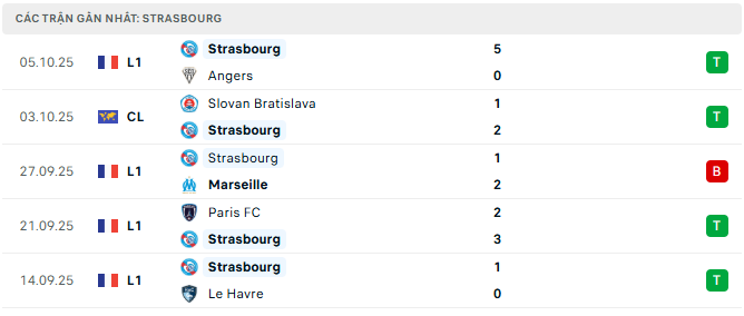 Phong độ Strasbourg 5 trận gần đây