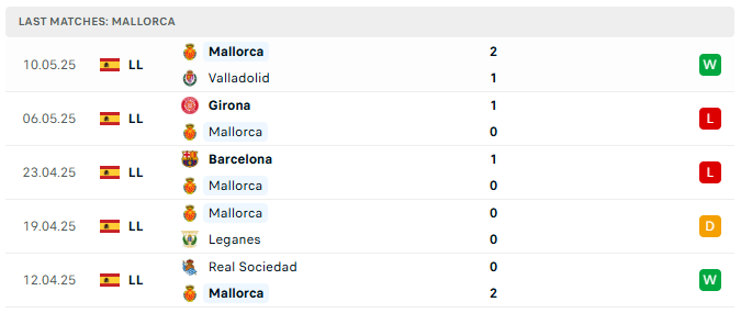 Ở chiều ngược lại, Mallorca vẫn đang duy trì cuộc đua quyết liệt cho một suất dự cúp châu Âu mùa tới. Sau 35 vòng đấu, đội bóng của HLV Jagoba Arrasate có trong tay 47 điểm, bằng điểm với Rayo Vallecano – đội đang xếp trên nhờ hiệu số – và chỉ kém Celta Vigo ở vị trí dự Europa League đúng 2 điểm. Với khoảng cách sít sao này, Mallorca chắc chắn sẽ chơi với quyết tâm cao nhất trong giai đoạn nước rút, nuôi hy vọng giành vé ra trời Âu.