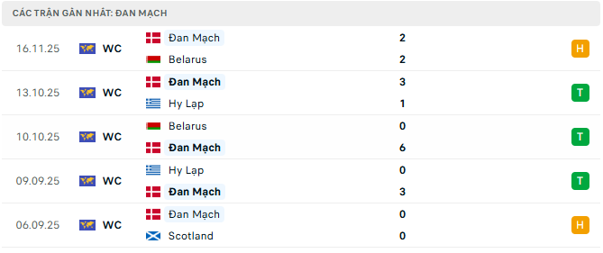 • Đan Mạch dù đang giữ ngôi đầu bảng nhưng phong độ sân khách thời gian qua không thực sự thuyết phục. Trong 5 chuyến hành quân gần nhất, “Những chú lính chì” chỉ thắng 2 trận, còn lại hòa và thua. Về tổng thể, Đan Mạch vẫn là đội bóng giàu kỷ luật, sở hữu chất lượng đội hình nhỉnh hơn và đang bất bại trong 3/5 trận gần đây. Tuy nhiên, họ thường gặp khó khăn mỗi khi làm khách tại Scotland – nơi họ đã để thua cả 3 lần gần nhất. Việc chỉ hơn Scotland đúng 1 điểm cũng khiến Đan Mạch chịu áp lực nhất định.