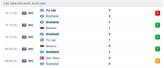 Phong độ Scotland 5 trận gần đây