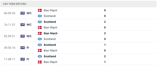 Lịch sử đối đầu càng khiến người hâm mộ Scotland thêm phần tự tin. Trong 5 lần gặp nhau gần nhất, Scotland thắng 3, hòa 1 và chỉ thua 1. Đặc biệt, mỗi khi tiếp đón Đan Mạch trên sân nhà, Scotland đều giành chiến thắng. Những con số ấy không chỉ phản ánh lợi thế sân bãi, mà còn cho thấy Scotland luôn biết cách tận dụng những thời điểm then chốt.