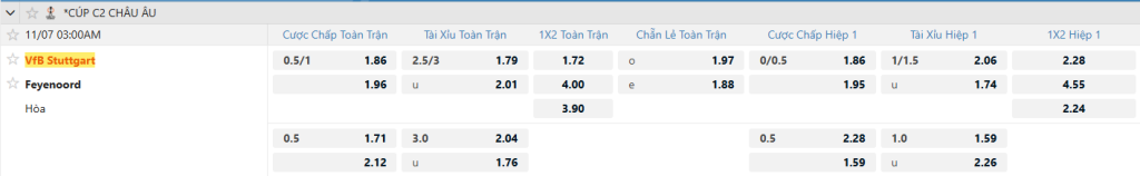 Soi kèo bóng đá Stuttgart vs Feyenoord
