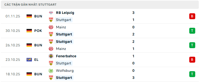 - Stuttgartđang cho thấy dấu hiệu chững lại trong thời gian gần đây. Sau chuỗi trận đầu mùa khởi sắc, họ chỉ thắng 1/4 trận gần nhất và để thủng lưới tới 6 bàn trong cùng giai đoạn. Lối chơi pressing cao của HLV Sebastian Hoeneß khiến Stuttgart dễ để lộ khoảng trống phía sau khi đối thủ phản công nhanh. Hàng công của đội bóng Đức cũng đang gặp vấn đề khi tịt ngòi ở cả 2 lượt trận gần nhất tại Europa League. Tuy vậy, trên sân nhà, Stuttgart vẫn thường thi đấu cởi mở – 4/5 trận gần nhất ở Mercedes-Benz Arena đều có từ 3 bàn thắng trở lên. Điều đó cho thấy dù hàng thủ chưa ổn định, họ vẫn duy trì xu hướng chơi tấn công chủ động.